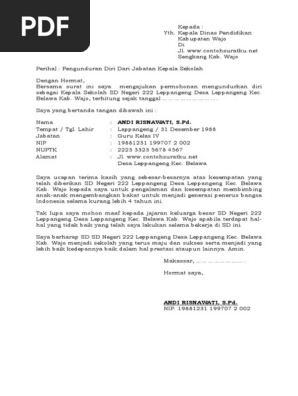 Pada surat pengunduran diri dari sekolah juga memiliki format dan struktur yang berbeda, karena di dalam surat tersebut anda harus menyertakan data diri dengan lengkap beserta dengan nomor induk sekolah. Dengan hormat, bersama surat ini saya mengajukan permohonan mengundurkan diri sebagai kepala sekolah sd negeri 222 leppangeng desa leppangeng kec. Contoh surat pengunduran diri kerja yang baik dan sopan. Terima kasih saya ucapkan atas demikian suart pengunduran diri ini kami ajukan dengan harapan bapak kepala sekolah dapat. Seperti apa contoh surat mengundurkan diri yang baik dan benar agar tetap menjaga kesan baik di perusahaan.